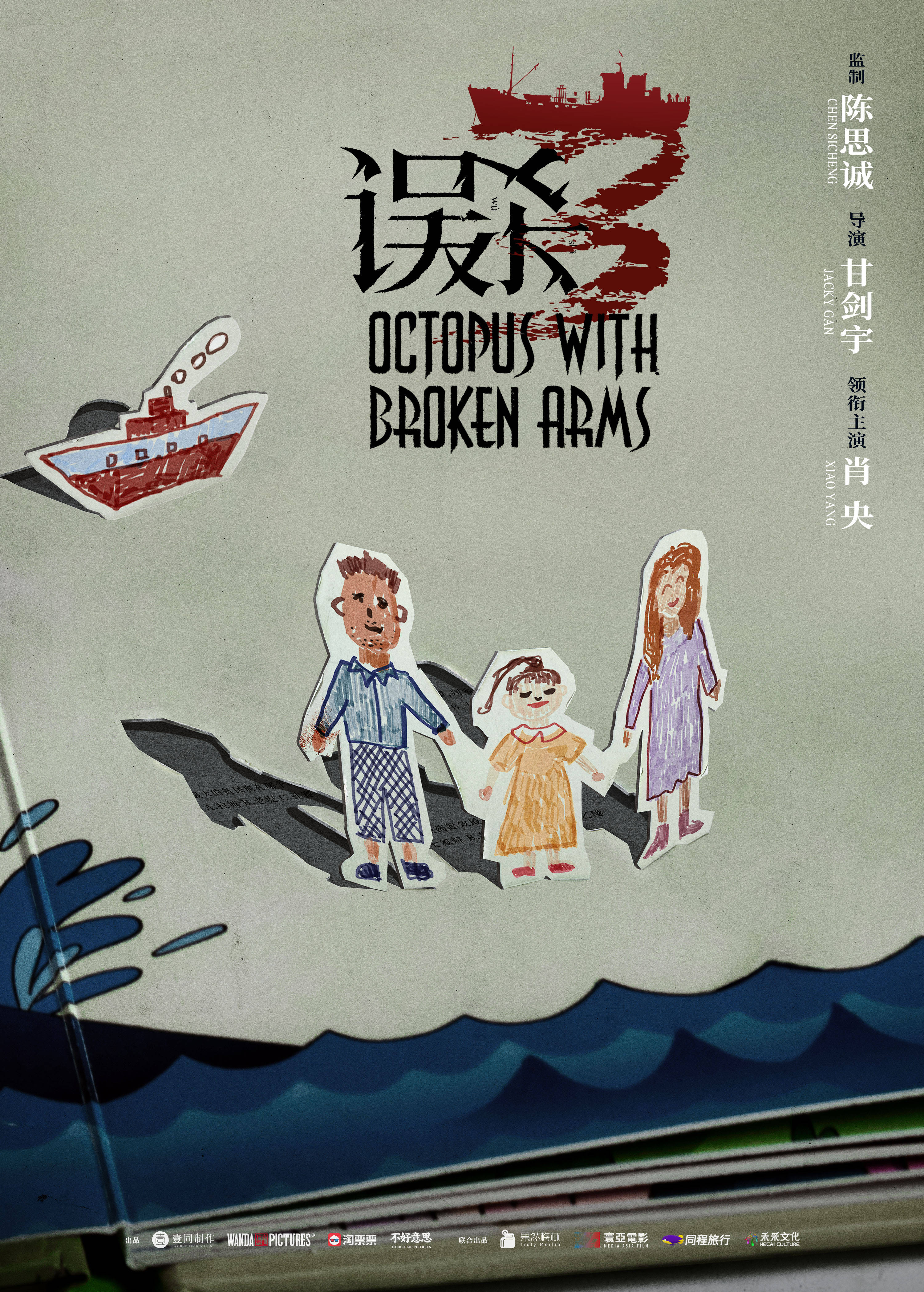 此次伴随《误杀3》顺利杀青发布的概念海报,延续了该系列概念海报的风格特点,以儿童笔触为基础,温馨表象下暗藏诸多细节。无论是中文片名中精心设计成轮船与海浪的数字“3”,还是英文片名传递的“断臂章鱼”的意象,皆让人隐隐感觉到汹涌海浪中潜藏着不为人知的秘密,彰显犯罪悬疑类型气质之余,也唤醒了大家对该系列的记忆。