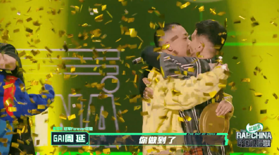 总决赛还有一个难忘的细节,在《中国说唱巅峰对决》夺冠后,GAI周延和艾热AIR拥抱,并和他说“你做到了”。这其实是艾热AIR和GAI周延两人之间的约定,而艾热AIR也真的把它实现了“把MVP和冠军都留在D.M.G”,艾热AIR和GAI周延都来自种梦音乐D.M.G,这一刻团魂燃烧。