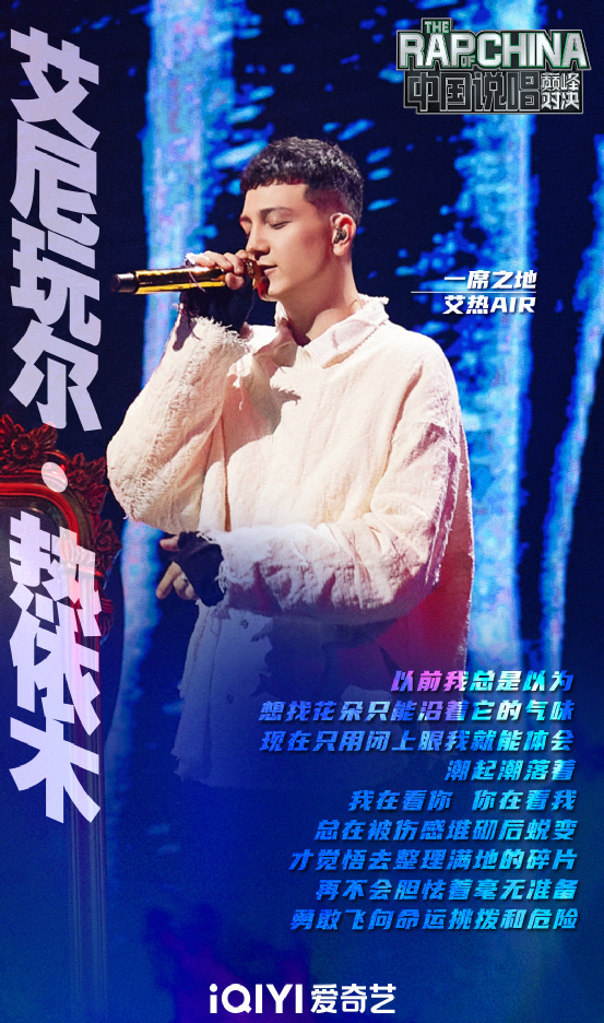 爱奇艺《中国说唱巅峰对决》总决赛,“一席之地”拿下冠军。艾热AIR作为其中的一员,又一次加冕了冠军。