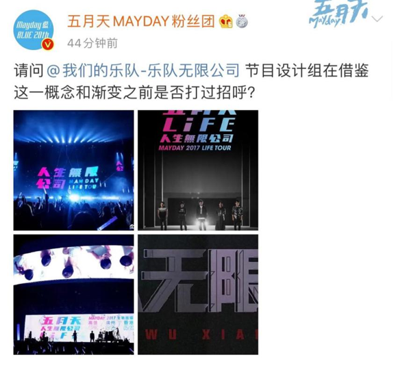 五月天粉丝团发博质疑节目组:请问节目设计组在借鉴这一概念时和渐变之前是否打过招呼?
