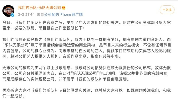 而《我们的乐队》将自己称为“乐队无限公司”,也有总裁和团队,这自然引起了五月天粉丝的不满。