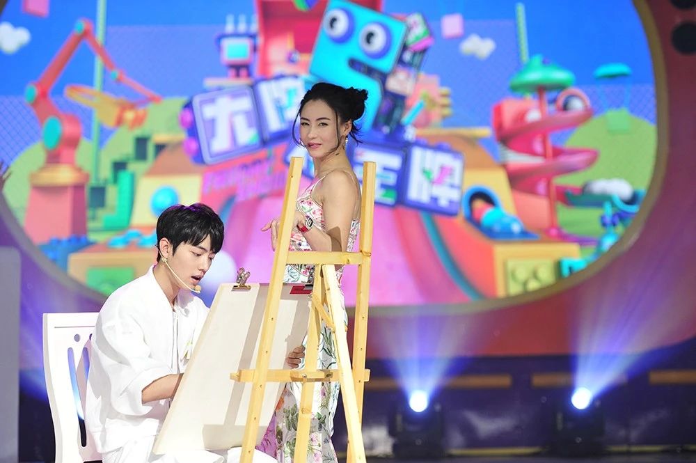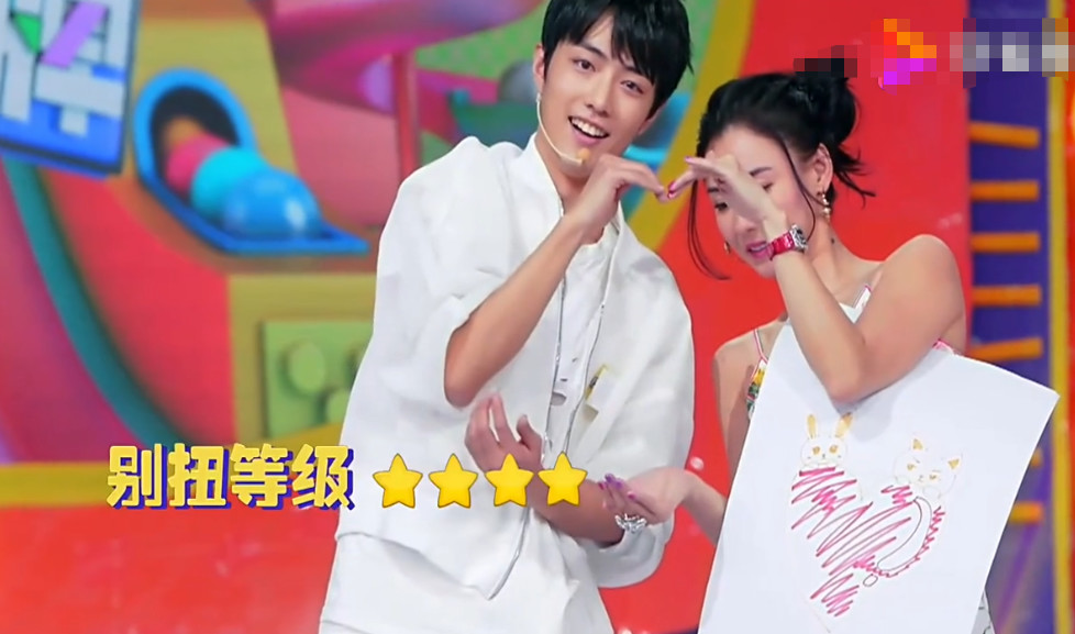 在节目短短的时间内,肖战就画了两只可爱的兔子,最后主持人张大大让肖战拿着画跟张柏芝一起比个心,可是呆萌的张柏芝却不理解“比心”的意思,呆呆的不知道要做什么动作。