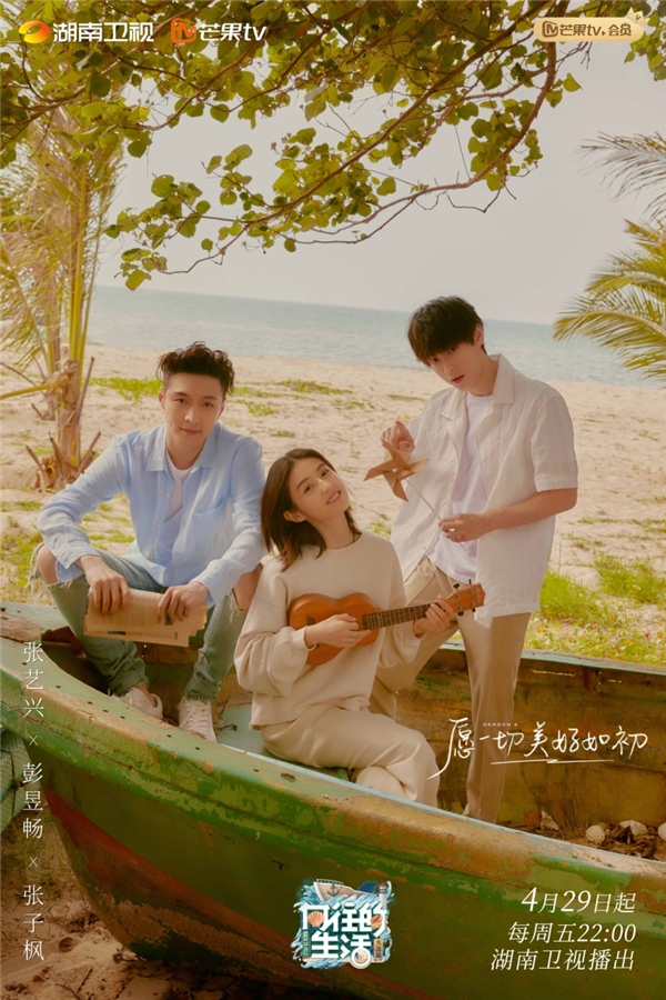 张艺兴、彭昱畅、张子枫三人的“兄妹海风椰林版”海报也于4月17日发布。画面正中的张子枫坐在木船上,手持一把尤克里里,歪着头展现出甜美笑颜;张艺兴坐在船沿上,手里拿着一卷书,身着蓝色衬衣,充满了邻家哥哥的亲切温柔之感;彭昱畅则身着白色衬衫站在画面右侧,手中把玩着一个纸风车,表现出少年的调皮之气。三人一同望向镜头,青春的气息扑面而来。